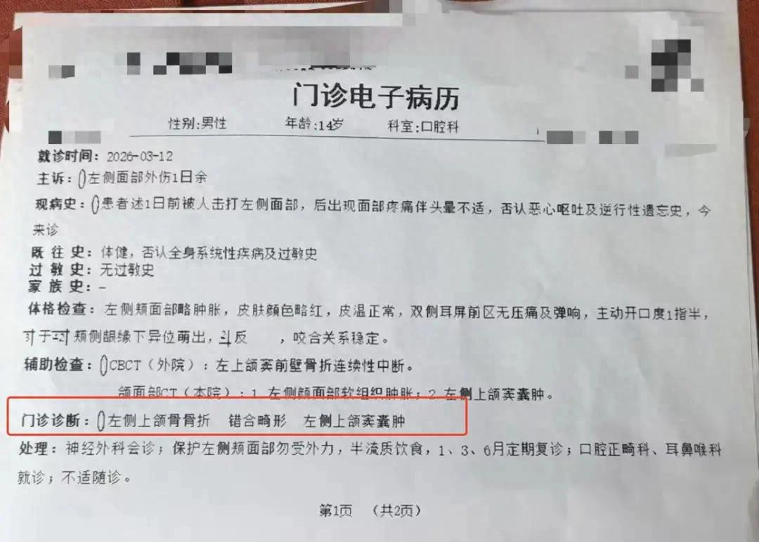 郭女士告诉记者,侄子小郭在太原维刚实验学校读寄宿。3月10日下午,在学校操场体育课期间,体育老师杨某与侄子小郭发生矛盾后引发肢体冲突,小郭面部被打伤。“当天晚上孩子脸疼得不行,学校只给了一颗止痛药,没有带孩子去正规医院做检查。第二天孩子的脸肿得更厉害,校方才带孩子去医院检查,但我们家长直到11日中午才知道情况,从当天孩子被打到第二天带孩子去医院检查,学校始终没有通知家长。”