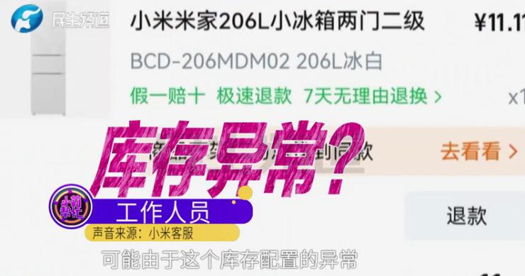 面对张先生的质疑,小米官方客服回应称,秒杀活动中的冰箱产品确实因系统配置错误导致订单无法发出。当记者追问,系统配置发什么了什么错误?客服:可能是库存配置异常。如果想要发货,需要联系对应平台。