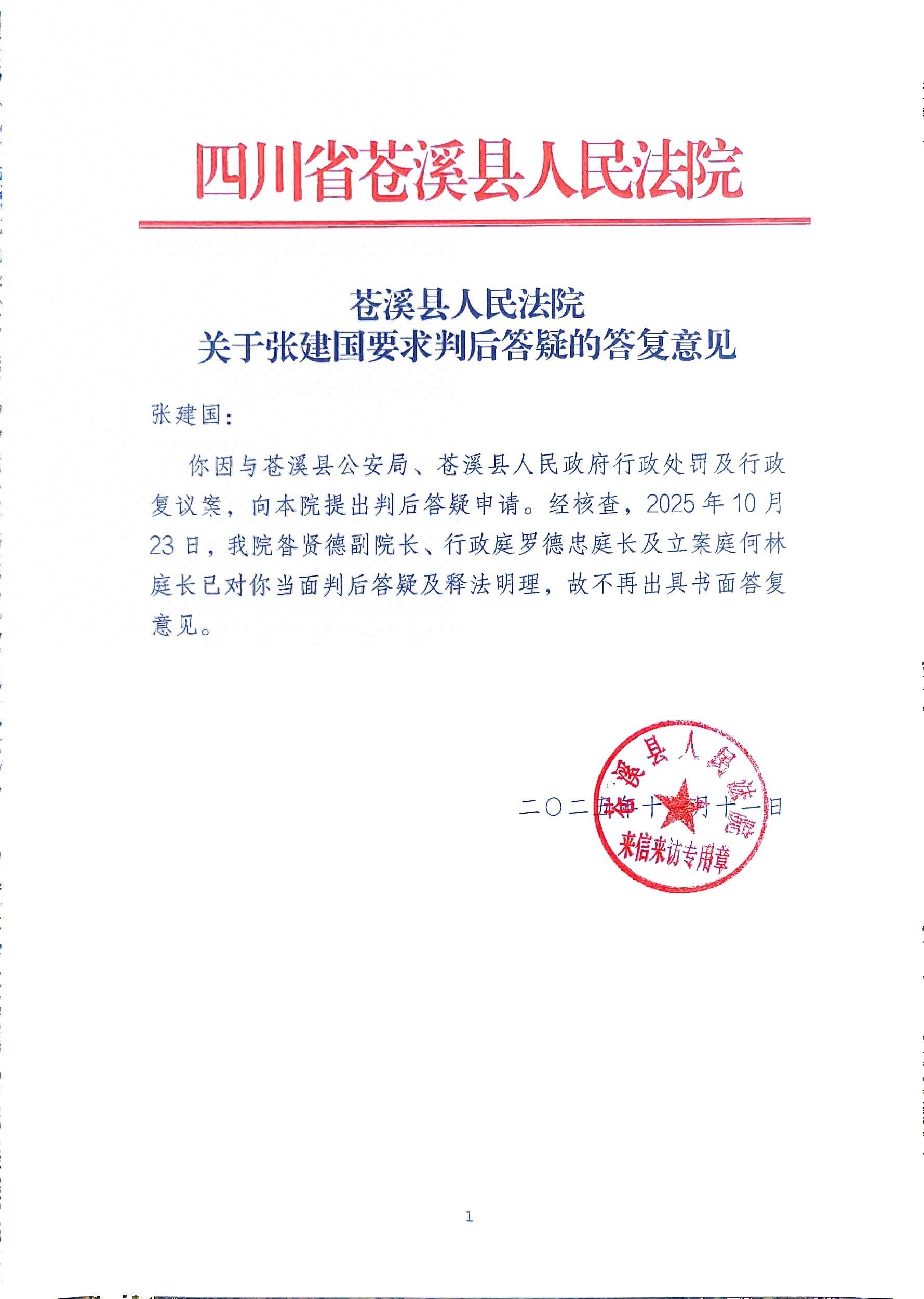 拿到行政判决书后,我按规定向苍溪县人民法院申请判后答疑,全程配合签字留痕,却被明确告知“答疑笔录仅许查阅、不准复制,同步录音录像也一概不给”。这就像一场“单向透明”的对话:法官拿着记录好的“标准答案”自说自话,我只能听、只能签,手里却连一份能佐证的材料都没有——苍溪法院这场“空口无凭”的判后答疑,到底是释法明理,还是形式主义的“走过场”?