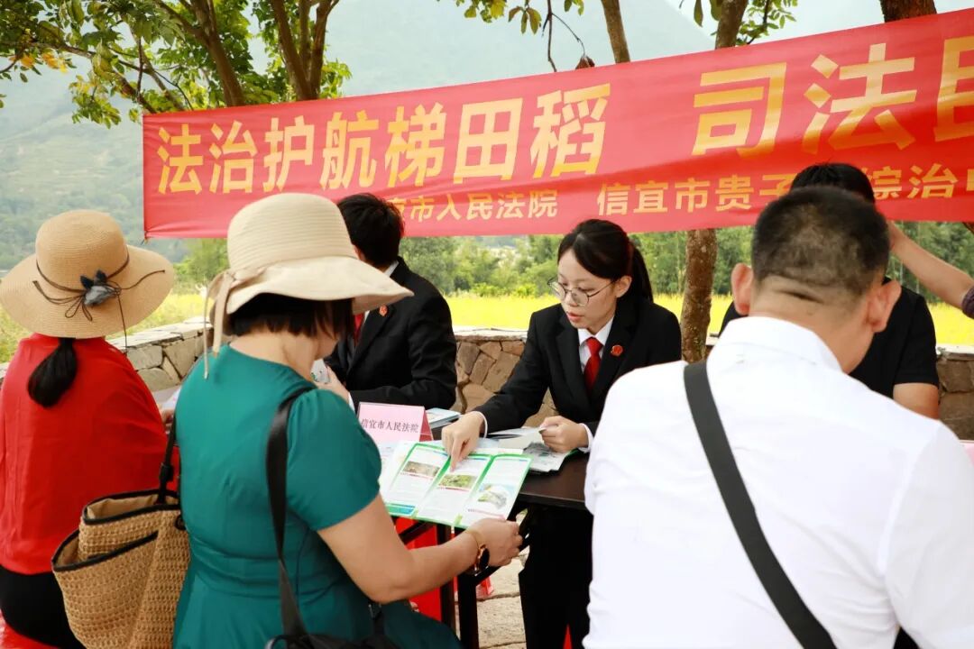法院干警联合镇综治中心、当地村委会在梯田旁现场解答农户、游客的疑问。