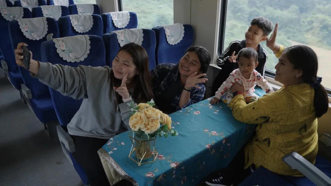 苏帕潘与同事、学生一行乘坐中老铁路列车前往中国。