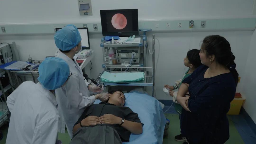 在广州的医院,她首先体验了先进的听力筛查与诊断流程。最让她震惊的,是医院配备的无障碍手语翻译系统:一个在线翻译器背后,连接着专业的手语翻译团队,听障人士能实时与医生顺畅交流。这一幕让她瞬间想起在老挝的经历——曾有一对听障夫妇带孩子看病,因缺乏翻译,她不得不全程充当“传声筒”,才能让诊疗顺利推进。