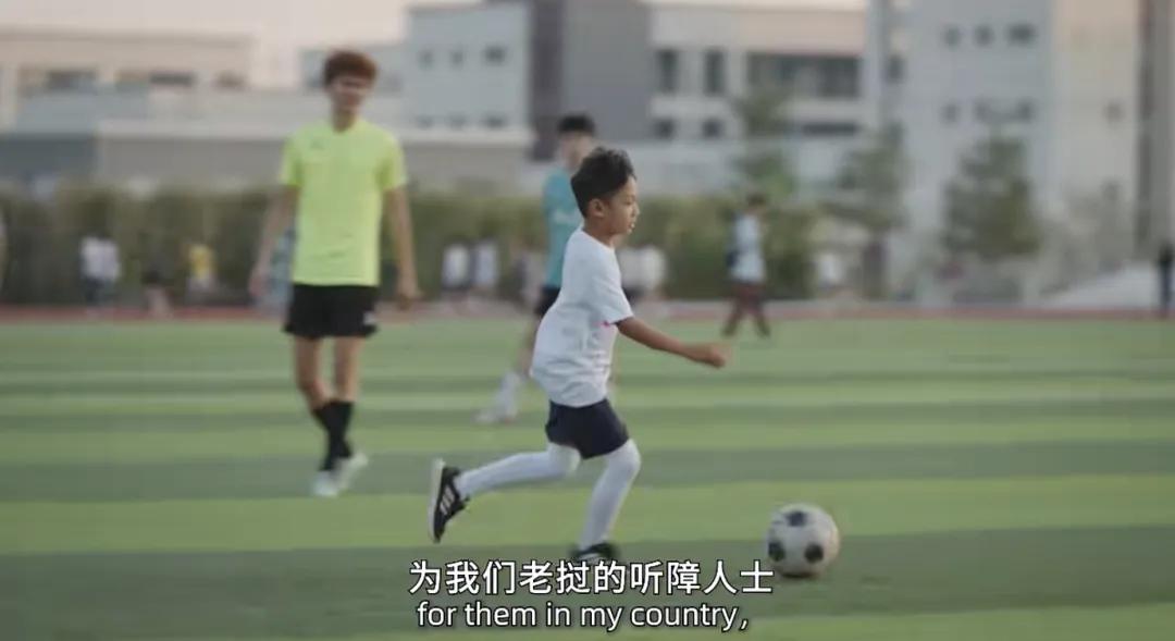 在中国,广州城市职业学院的师生们特意为热爱足球的男孩在广州组织了一场小小的友谊赛。
