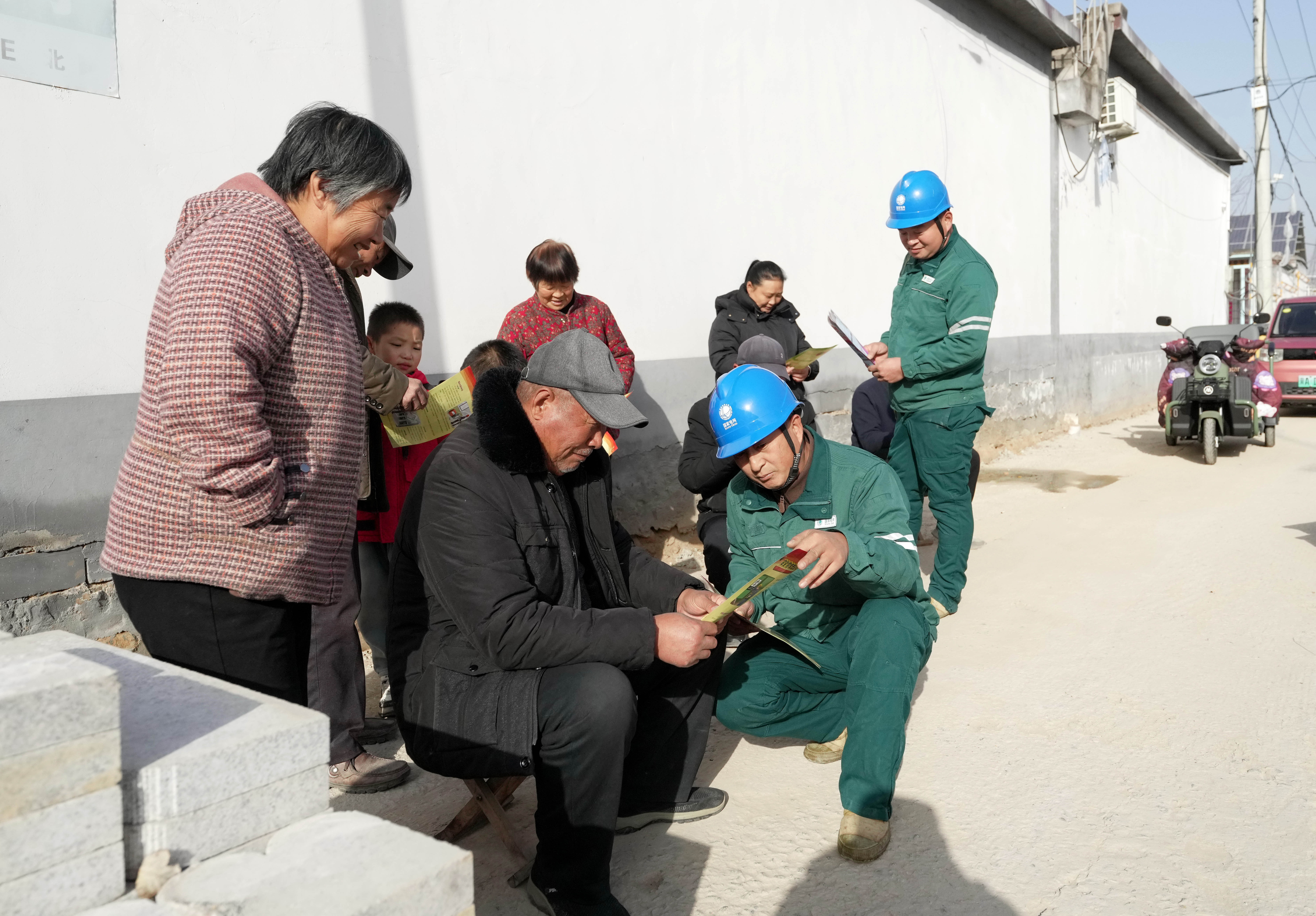 11月29日,国网平山县供电公司的工人在平山镇西村庄村向农户宣传冬季采暖安全用电常识。新华社记者 杨世尧 摄