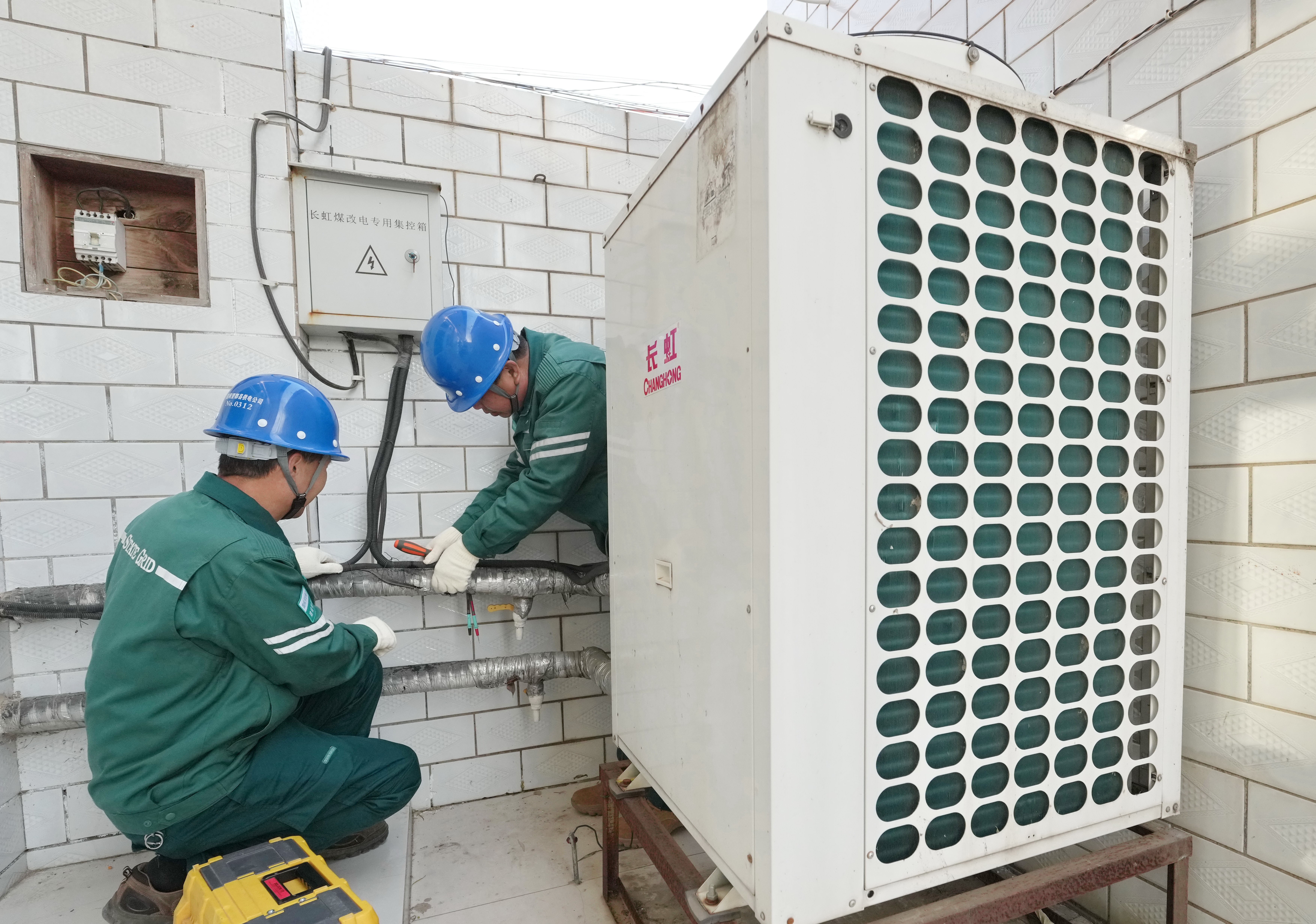 11月29日,国网平山县供电公司的工人在平山镇西村庄村为农户检修电采暖设备的供电线路。新华社记者 杨世尧 摄