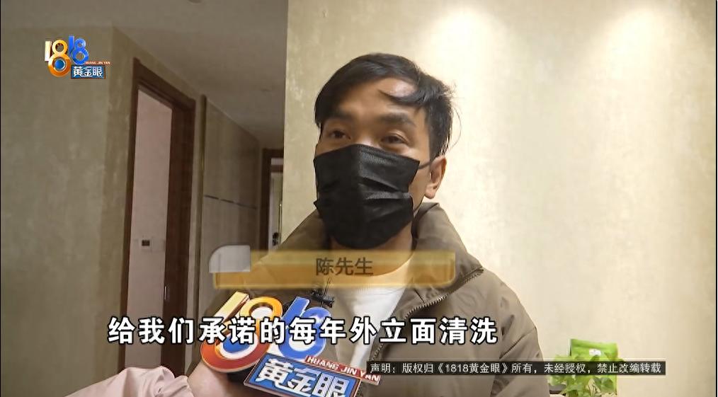 陈先生住在杭州临平区的久尚云筑小区,他介绍,两年多以前小区换了一家物业公司,“给我们承诺的每年外立面清洗,每年11月份到现在,也可以看到我们窗户这种东西,都是很脏的。”