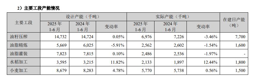 根据金龙鱼2025年半年报数据,其油籽压榨设计产能达14732千吨,实际产能仅为6976千吨,产能实际利用率仅为47.35%;油脂精炼设计产能达5669千吨,实际产能仅为2562千吨,产能实际利用率仅为45.19%。这两大核心产品的产能利用率均不足50%。