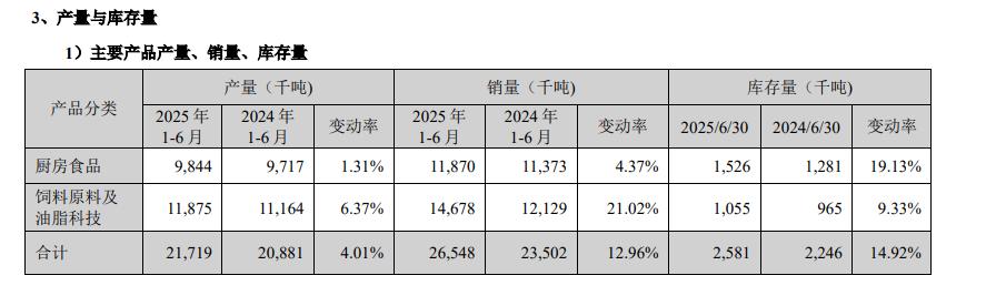 相比之下,饲料原料及油脂科技板块表现迥异,产量增长6.37%的同时销量激增21.02%,库存量仅温和增长9.33%,显示出良好的去化态势。尽管集团整体营业收入5.67%的增速仍高于营业成本3.85%的增幅,但厨房食品的库存积压隐忧与饲料原料的强劲去化形成鲜明对比,凸显了不同业务线面临的经营环境与效率存在显著分化。