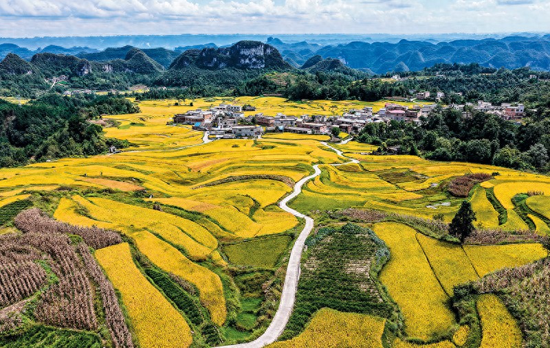 贵州省长顺县长寨街道摆塘梯田(2025 年 9 月 17 日摄) 陶亮摄 / 本刊提升农业综合生产能力和质量效益