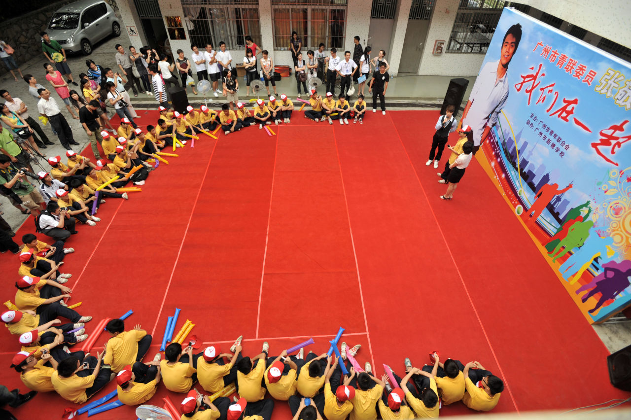2009年7月3日,广州,张敬轩走进工读学校,唱励志歌曲勉励学生。视觉中国图