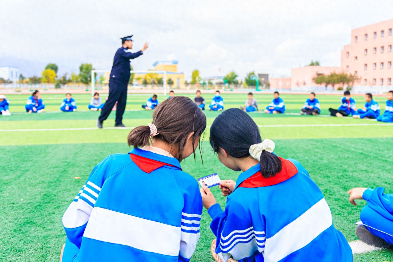 2025年9月9日,新疆伊犁州,法治副校长通过情景模拟和游戏互动的方式,讲解校园欺凌的危害及应对措施。视觉中国图