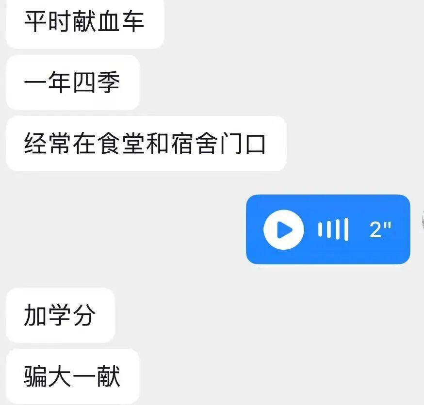 网传通知显示:“各班生活委员,为积极响应学校要求,动员同学们参与奉献社会、无偿献血活动。请各班获得国家奖学金、国家励志奖学金、助学金(一二三等)的同学,积极主动参与到无偿献血活动中。各班生活委员做好本班同学献血记录登记,如特殊情况不能参与献血同学,需提交书面情况明,献血截止日期为12月30日。”