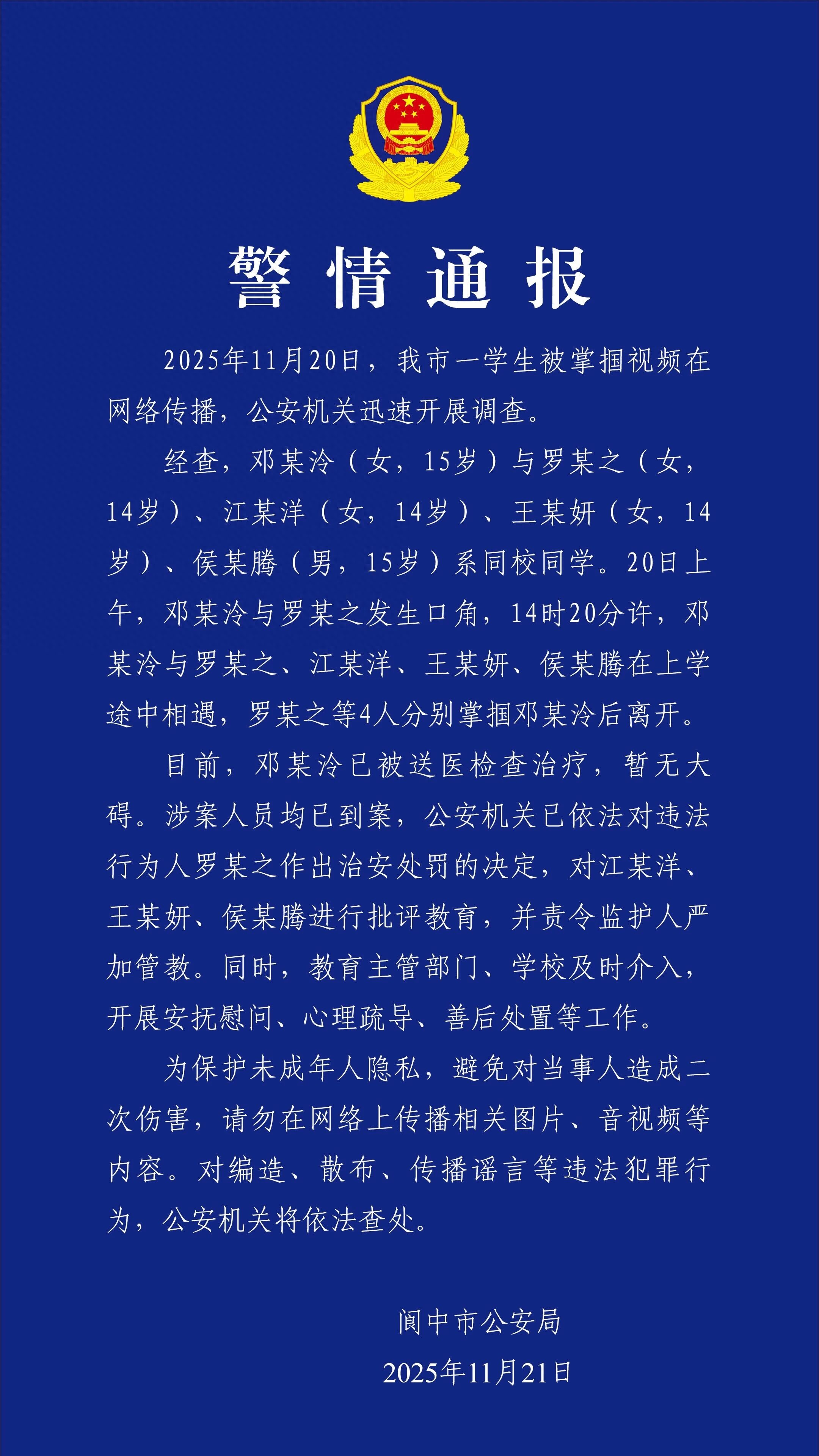 新京报讯 11月21日,四川阆中市公安局发布警情通报: