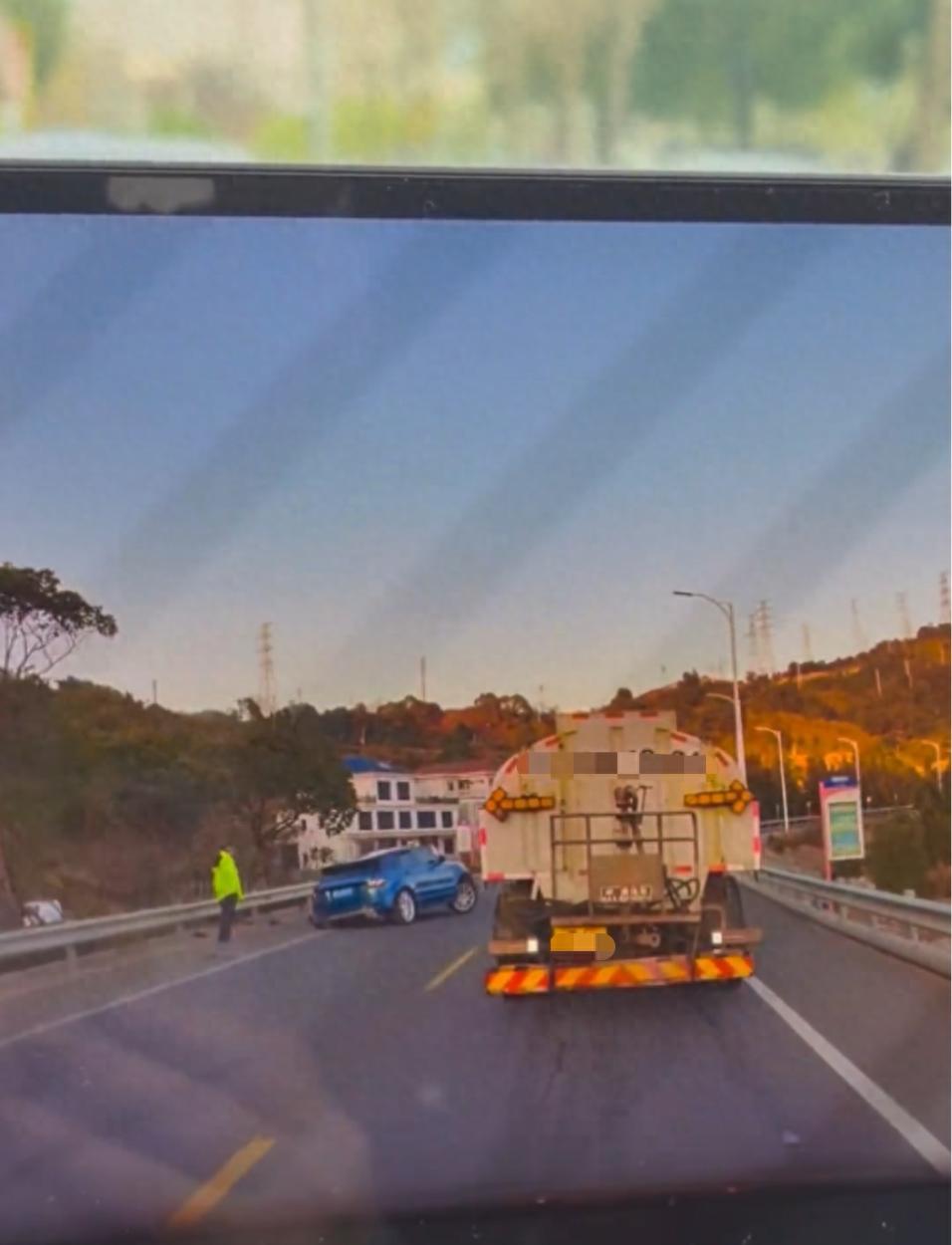 视频中,一辆牌照“浙C2XXX”的洒水车在道路上洒水作业,在弯道处,有交警在处置交通事故,洒水车关闭洒水装置,转弯后继续洒水作业。后遇到前方路旁有一名路人行走,洒水车未关闭洒水设备,洒在路人身上后离去。