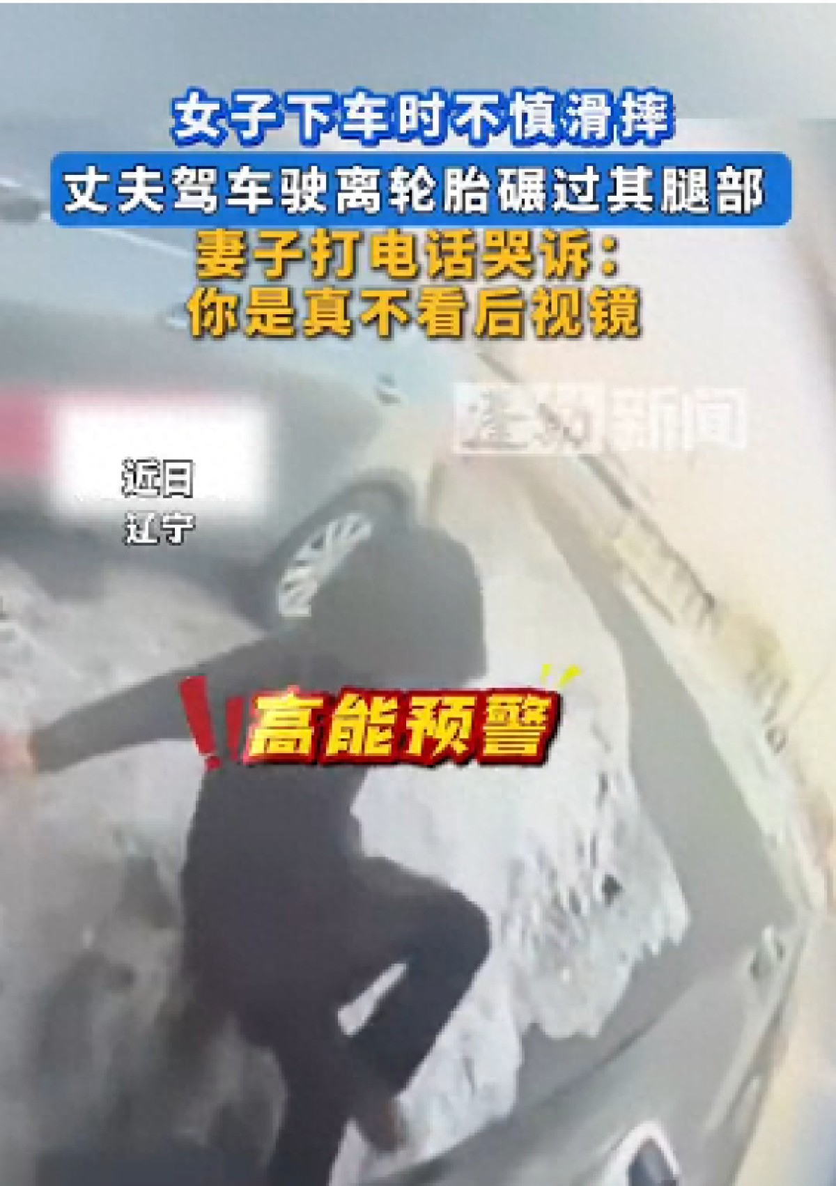 近日,辽宁一女子在下车时因地面太滑而不慎摔倒,而丈夫驾车驶离时并未注意到,轮胎直接碾过了妻子腿部,随后便驾车离开了。女子躺在地上打电话给丈夫哭诉自己被车压了,丈夫一听急了:“被谁压的?在哪压的?”女子回复“被你压的”后,丈夫赶紧挂断电话驾车返回。好在经过现场简单检查后,在医院拍片没有伤到骨头。