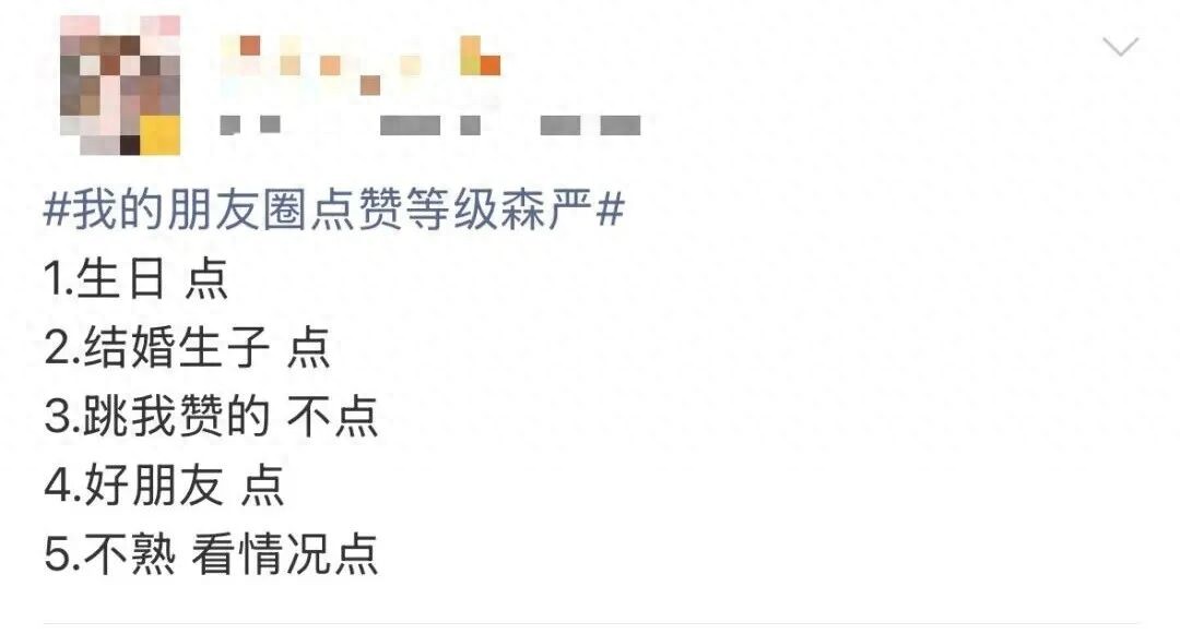 在长期使用中,一套心照不宣的点赞秩序逐渐形成。部分用户会根据关系亲疏、利益价值等,对朋友圈内容进行差异化回应。