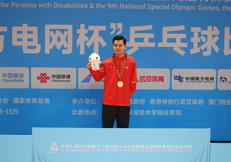 12月12日,赵帅在乒乓球项目TT8男子单打决赛中夺冠。